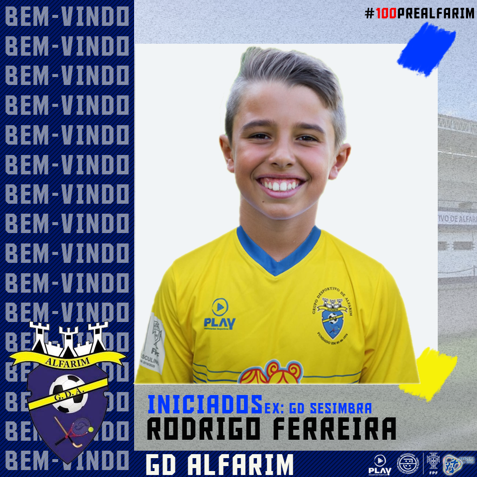 O GD Alfarim informa todos os sócios, adeptos e simpatizantes que o atleta Rodrigo Ferreira (Ex: GD Sesimbra) irá vestir a camisola do Grupo Desportivo de Alfarim durante a época 2020/2021. Desejo dos maiores sucessos!
