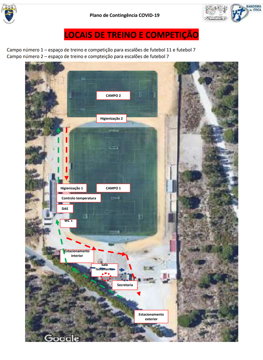 - O acesso á secretaria do campo de futebol será efetuada pelo portão de acesso ao parque de estacionamento interior e a saída será efectuada pelo portão pequeno junto as bilheteiras;