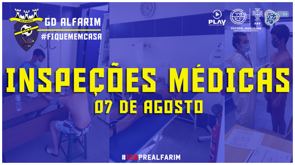 O GD Alfarim informa que está agendado para dia 7 de agosto a partir das 17:30 no centro desportivo de Alfarim, 2 fase de inspeções médicas.
