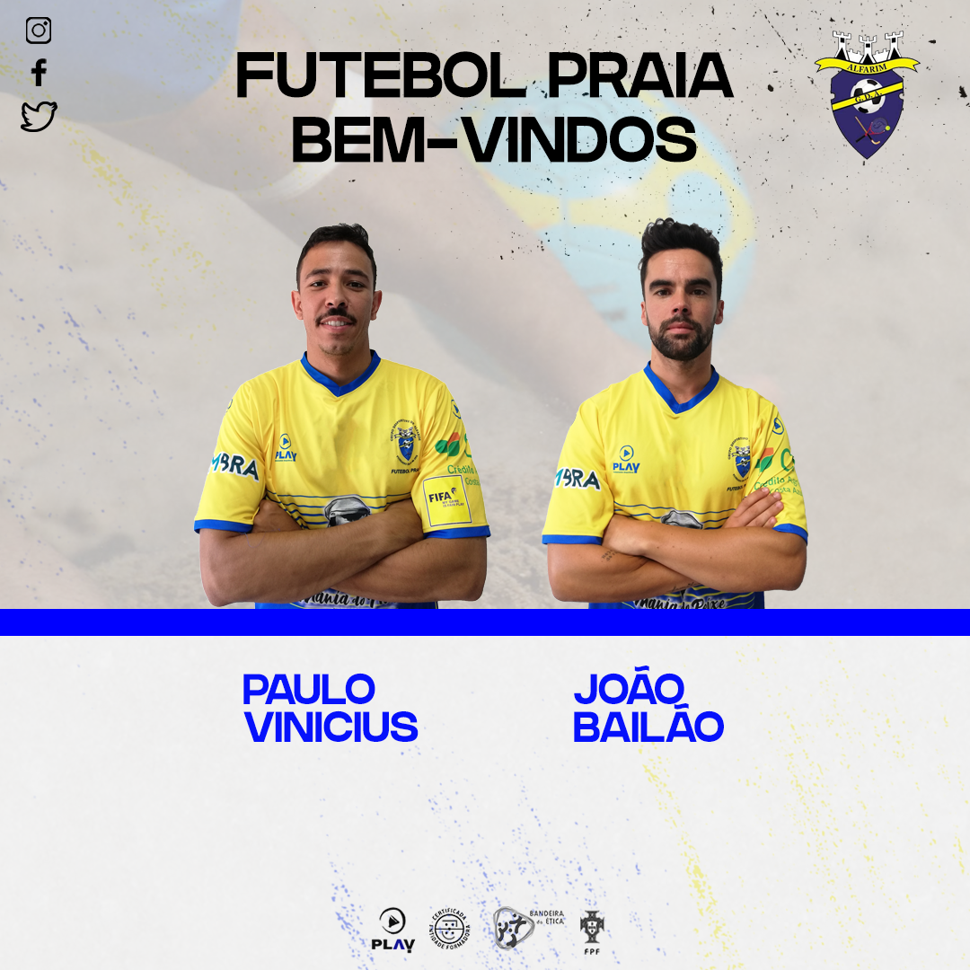 O GD Alfarim vem por este meio apresentar os atletas Paulo Vinicius e João Bailão que vão fazer parte da nossa equipa da modalidade de futebol de praia para a época 2020. Aos dois desejamos os maiores sucessos.