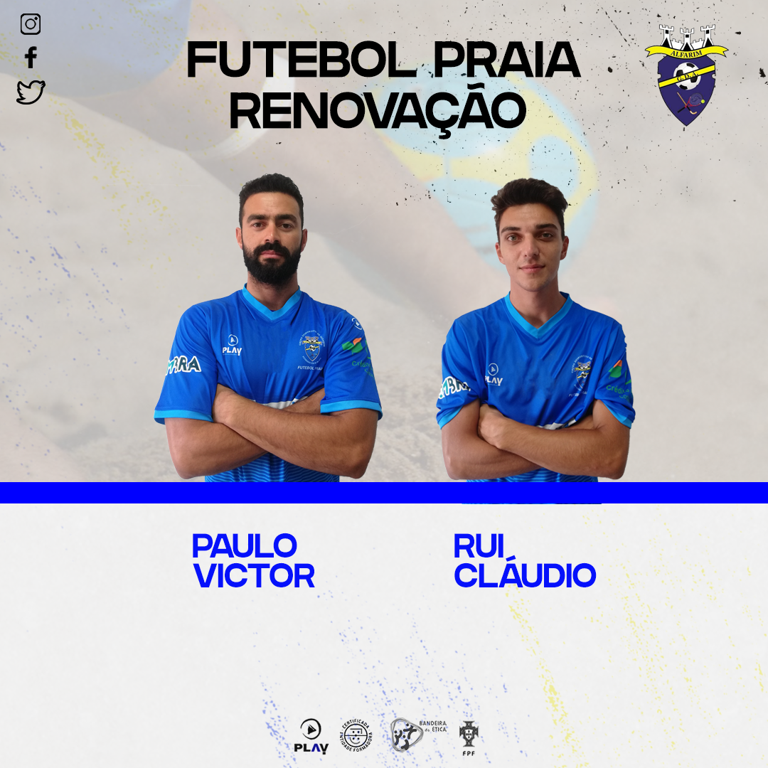 O GD Alfarim vem por este meio apresentar os atletas Paulo Victor e Rui Cláudio que vão fazer parte da nossa equipa da modalidade de futebol de praia para a época 2020. Aos dois desejamos os maiores sucessos.